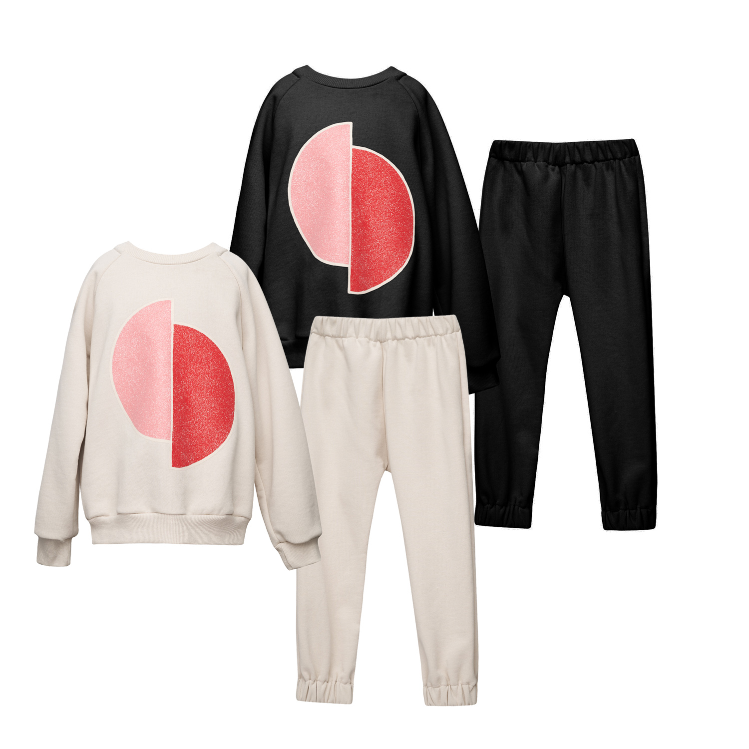 T4757 T-SHIRT EFFECT SET W/GLITTER CIRCLE SWEATER & SLOUCHY PANTS & ACC KID PLUS