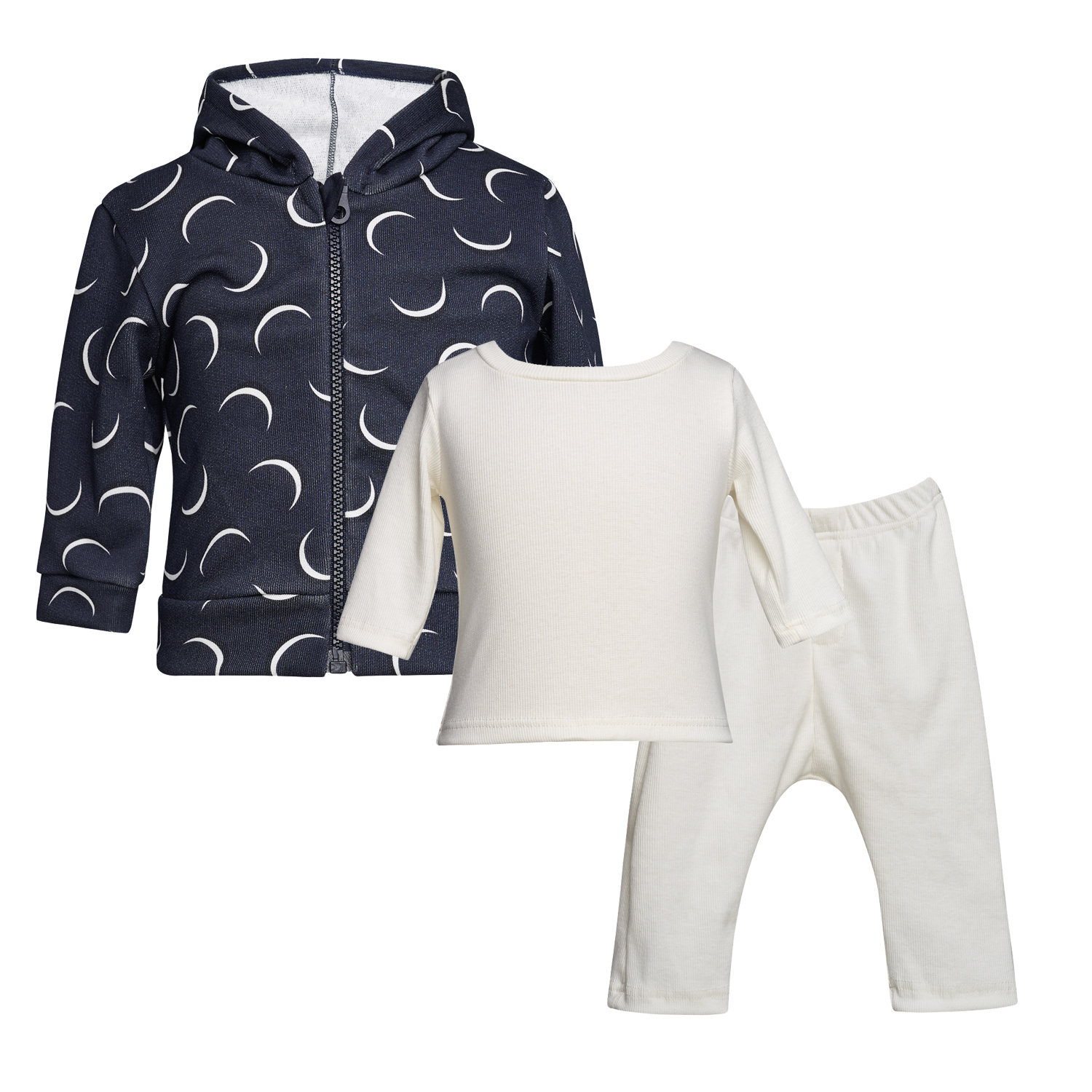 T4884 MOON RANGER SET OF 3 W/MOON PRINTED CARDIGAN, RIB TOP & LEGGINGS NB PLUS