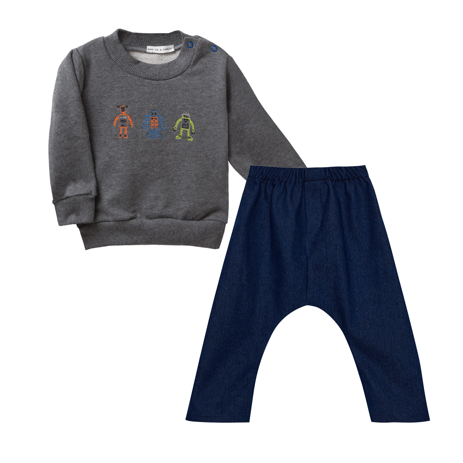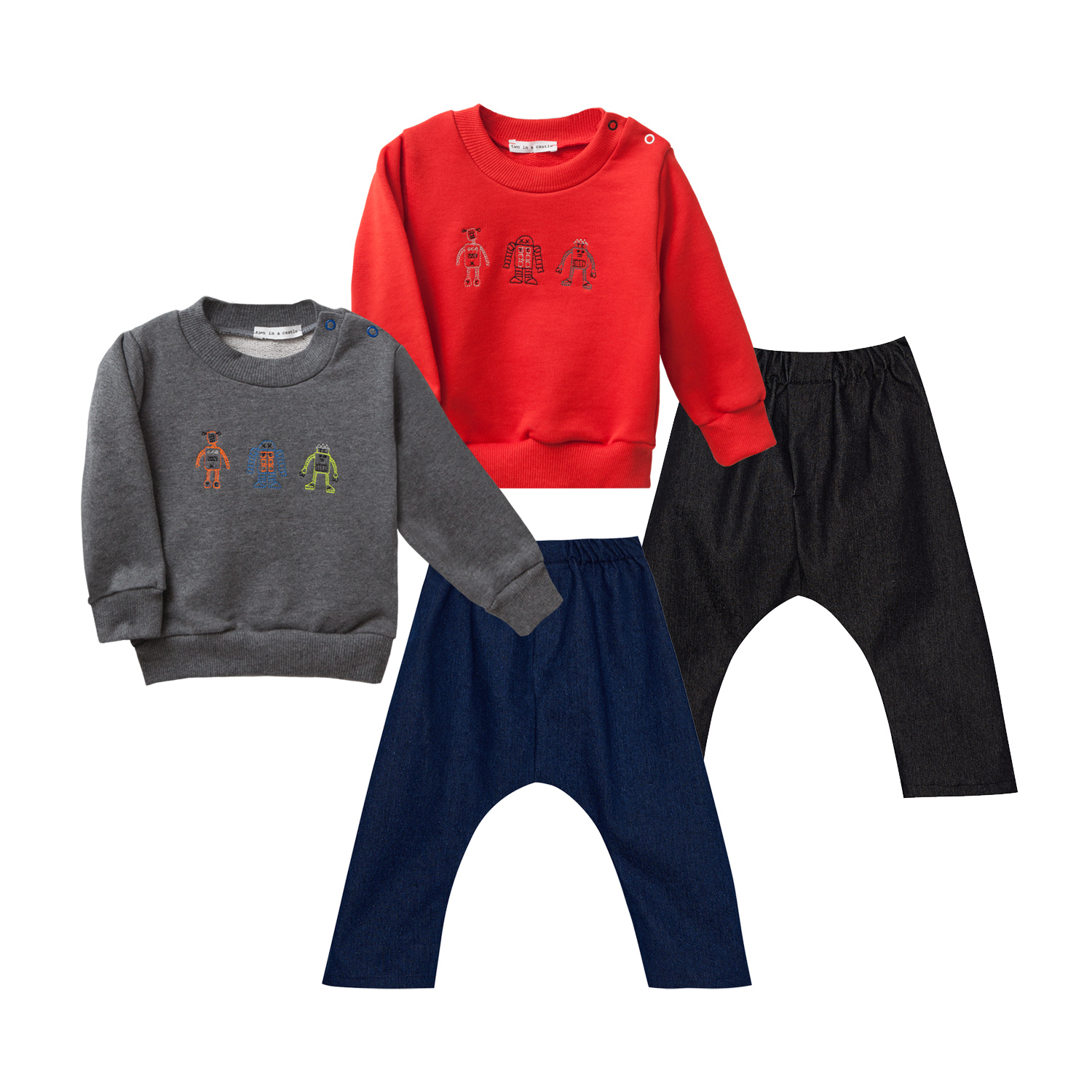 T5894 PAINT IT RED MR ROBOT SET W/SEWATER & DENIM SLOUCHY PANTS BABY PLUS