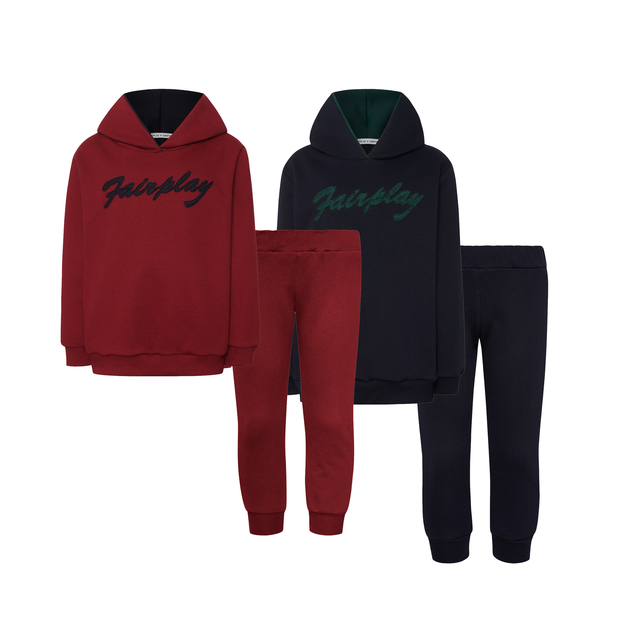 Top: Hoodie with an elegant embroidered “Fairplay” logo on the front.