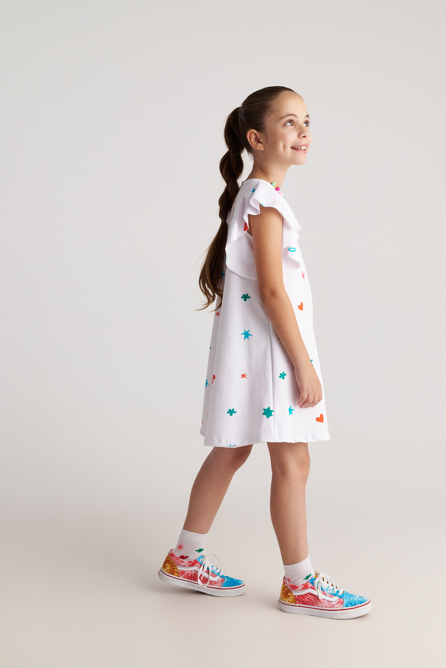 is designed for little dreamers who love comfort, color, and movement. Featuring an eye-catching allover star print, this playful playsuit brings fun energy and modern style to everyday outfits.