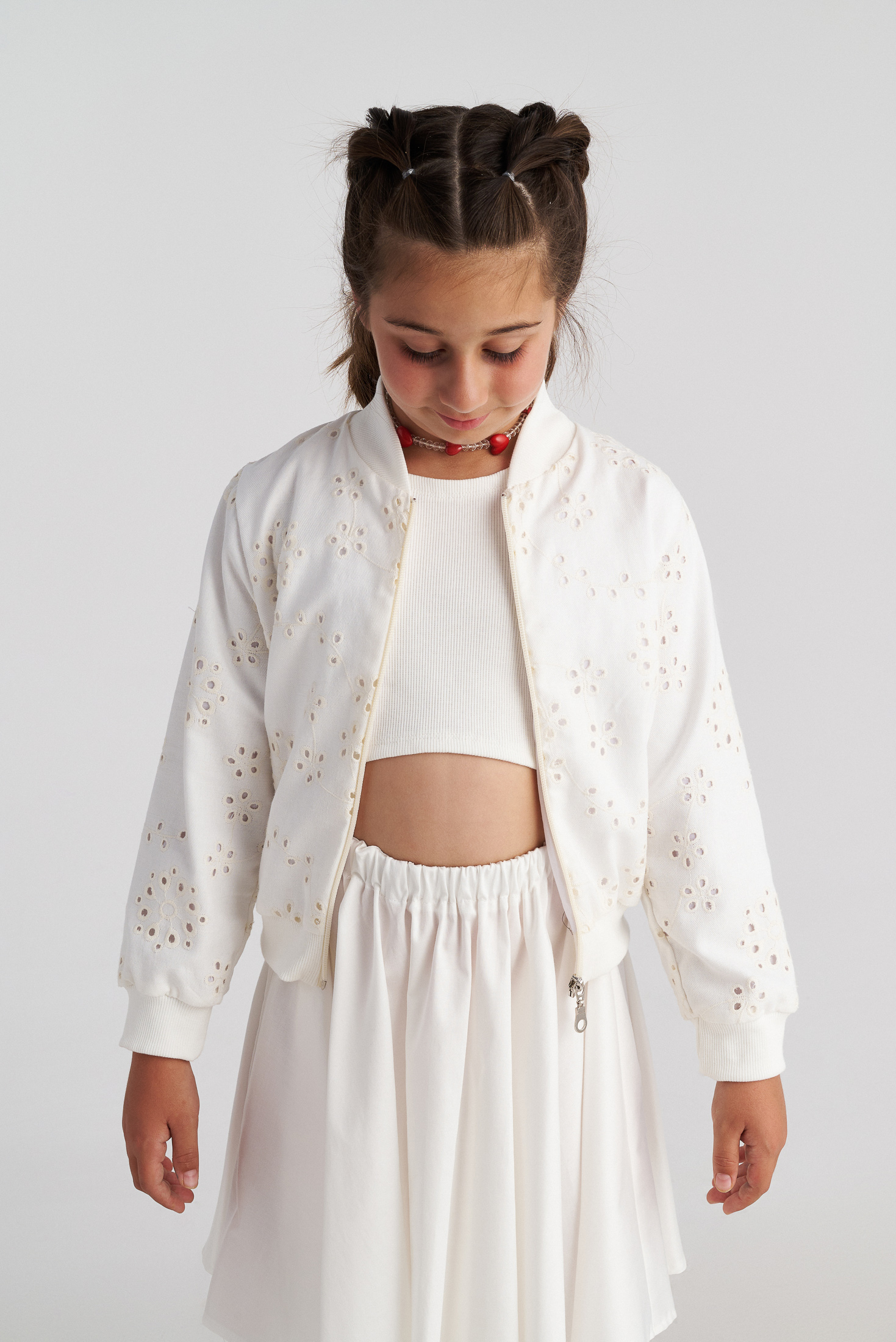 A stylish and comfy jacket featuring delicate embroidery. Lightweight and breathable, perfect for layering on cooler days, playtime, and everyday wear.