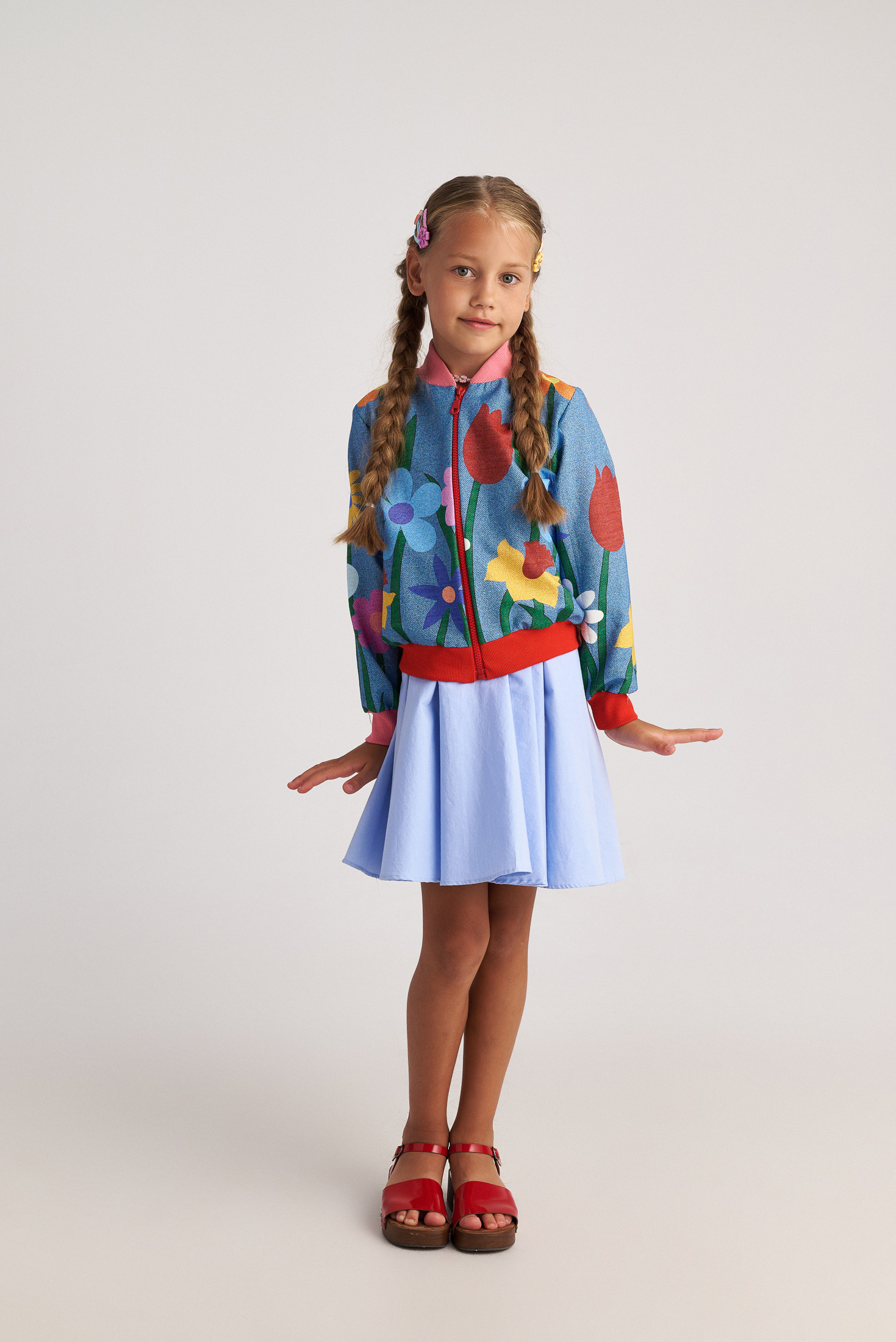 Inspired by nature and summer blooms, the Botanical Collection brings a fresh and playful touch to kids’ wardrobes. Featuring two dresses, one jumpsuit, and a lightweight jacket, all designed in a denim-inspired color palette with printed floral details, this collection blends comfort with standout style.